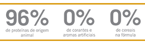Humedad (máx.) 90g/kg (9%); Proteína Bruta (mín.) 420g/kg (42%); Extracto Etéreo (mín.) 200g/kg (20%); Materia Fibrosa (máx.) 22g/kg (2,2%); Materia Mineral (máx.) 85g/kg (8,5%); Calcio (mín.) 8.000mg/kg (0,8%); Calcio (máx.) 15g/kg (1,5%); Fósforo (mín.) 8.000mg/kg (0,8%); Sodio (mín.) 2.000mg/kg; Potasio (mín.) 5.000mg/ kg; Magnesio (mín.) 900mg/kg; Omega 6 (mín.) 25g/ kg; Omega 3 (mín.) 12g/kg; DHA (mín.) 3.500mg/kg; EPA (mín.) 3.000mg/kg; Betacaroteno (mín.) 1,5mg/kg; Luteína (mín.) 5mg/kg; Fructo-Oligosacáridos (mín.) 3.500mg/kg; Manano-Oligosacáridos (mín.) 300mg/kg; DL-Metionina (mín.) 4.000mg/kg; Taurina (mín.) 2.000mg/kg; Sulfato de Condroitina (mín.) 900mg/kg; Sulfato de Glucosamina (mín.) 1.200mg/kg; E. Metabolizable 4.370 kcal/kg.